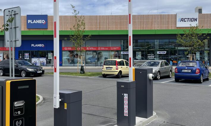Samoobslužný parkovací systém retail parku v Českých Budějovicích