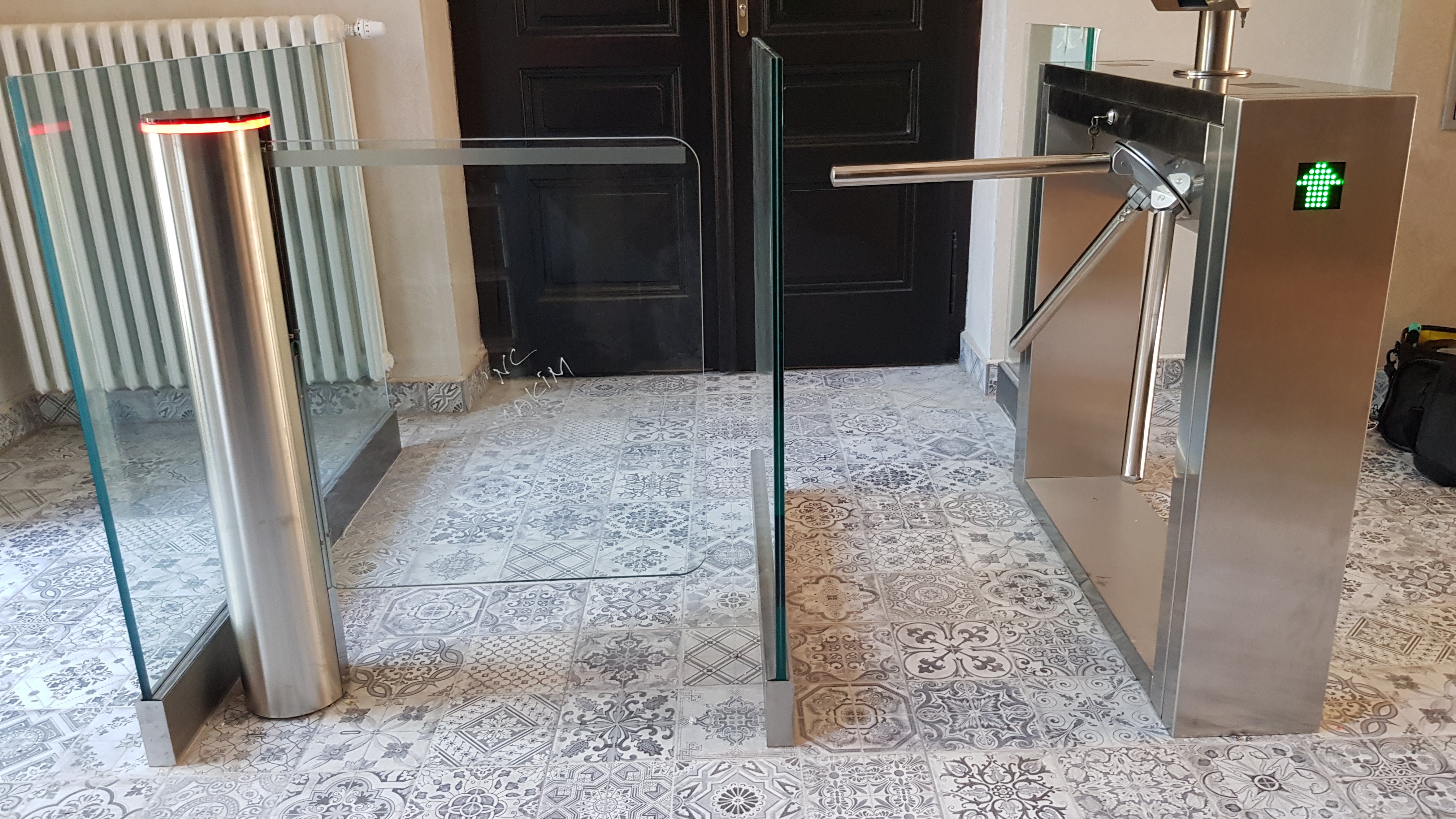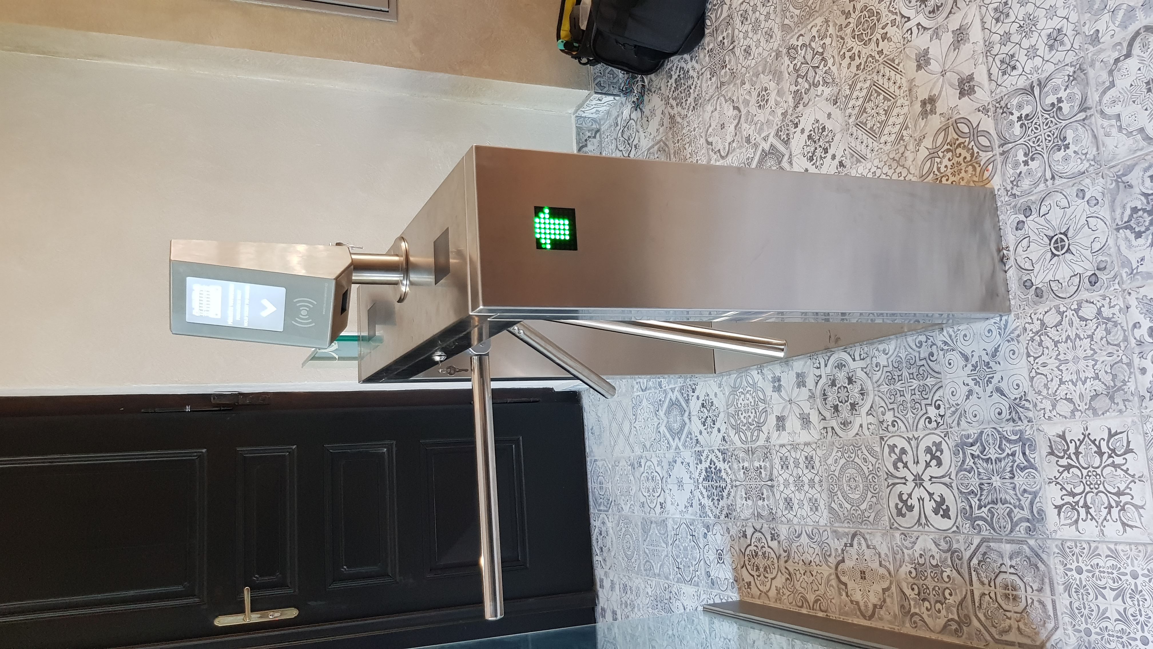 Tripod turnstiles at the entrance to the Dongwon corporate campus