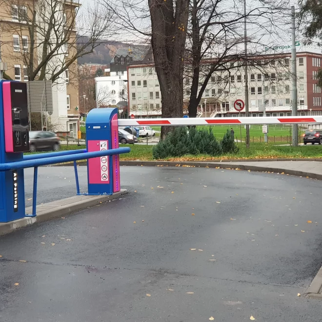 We installed a parking system with separate entrance and exit in the parking lot adjacent to the EUC Clinic and Pharmacy in Zlín and supplemented it with an automatic cash register