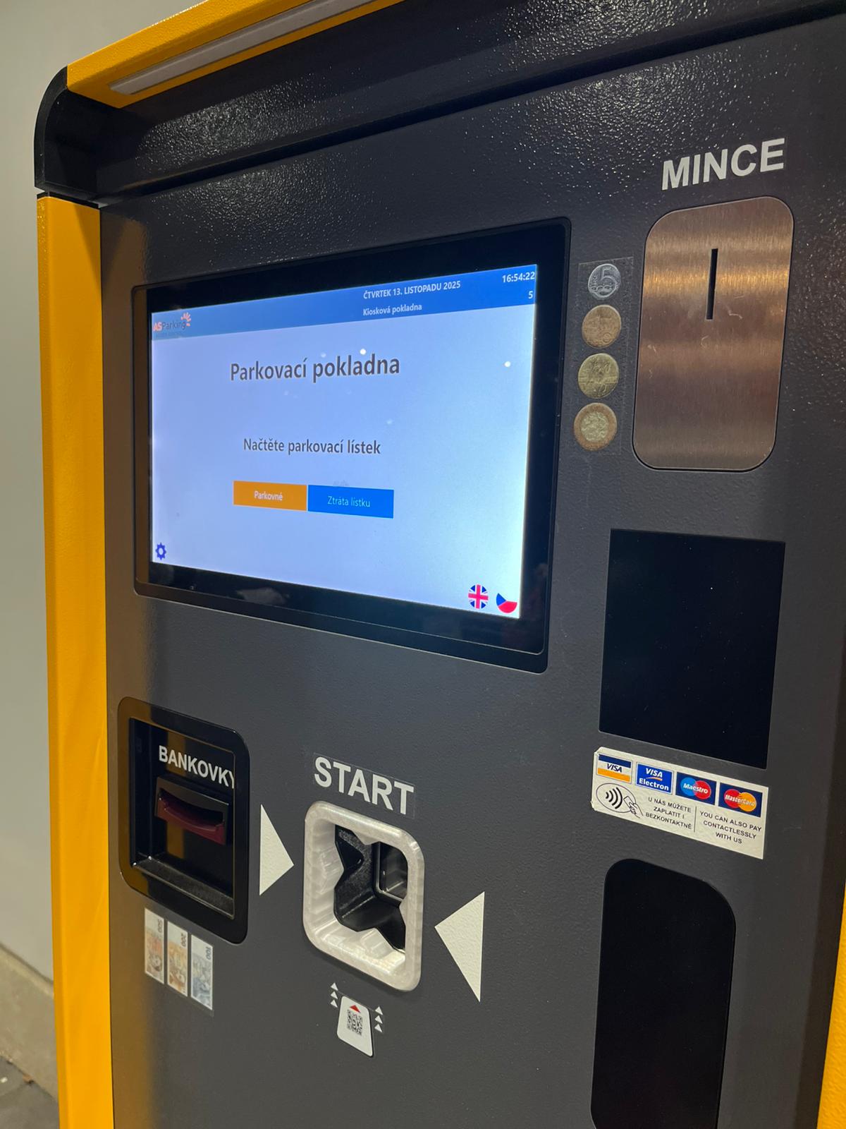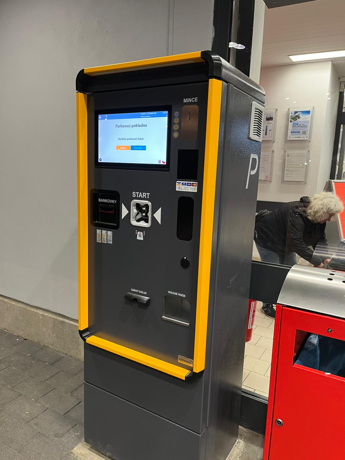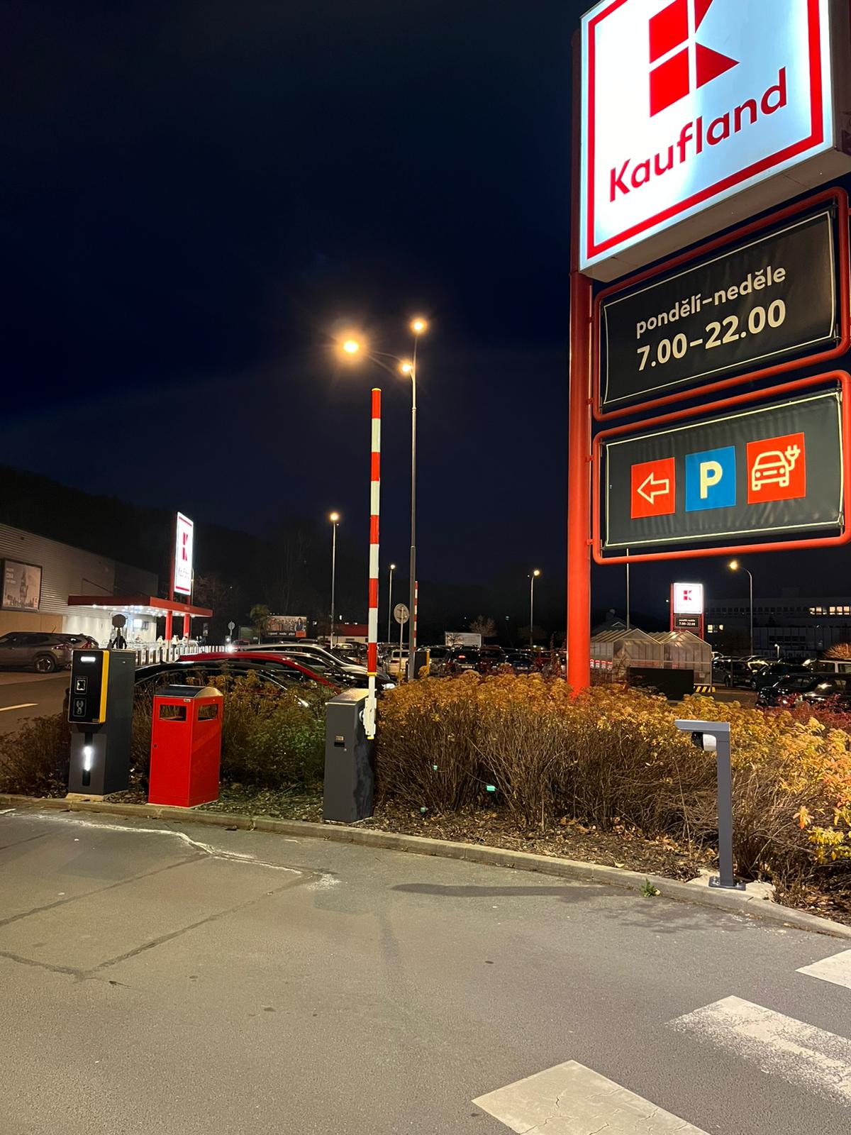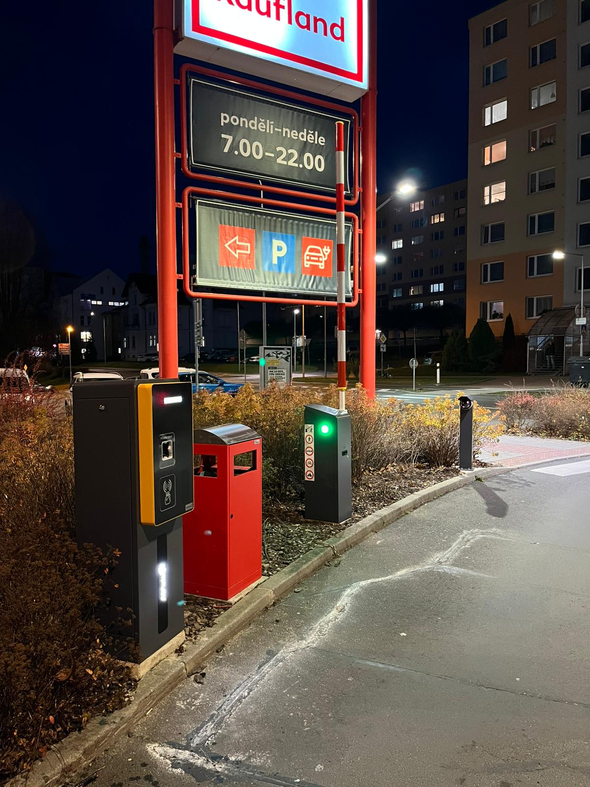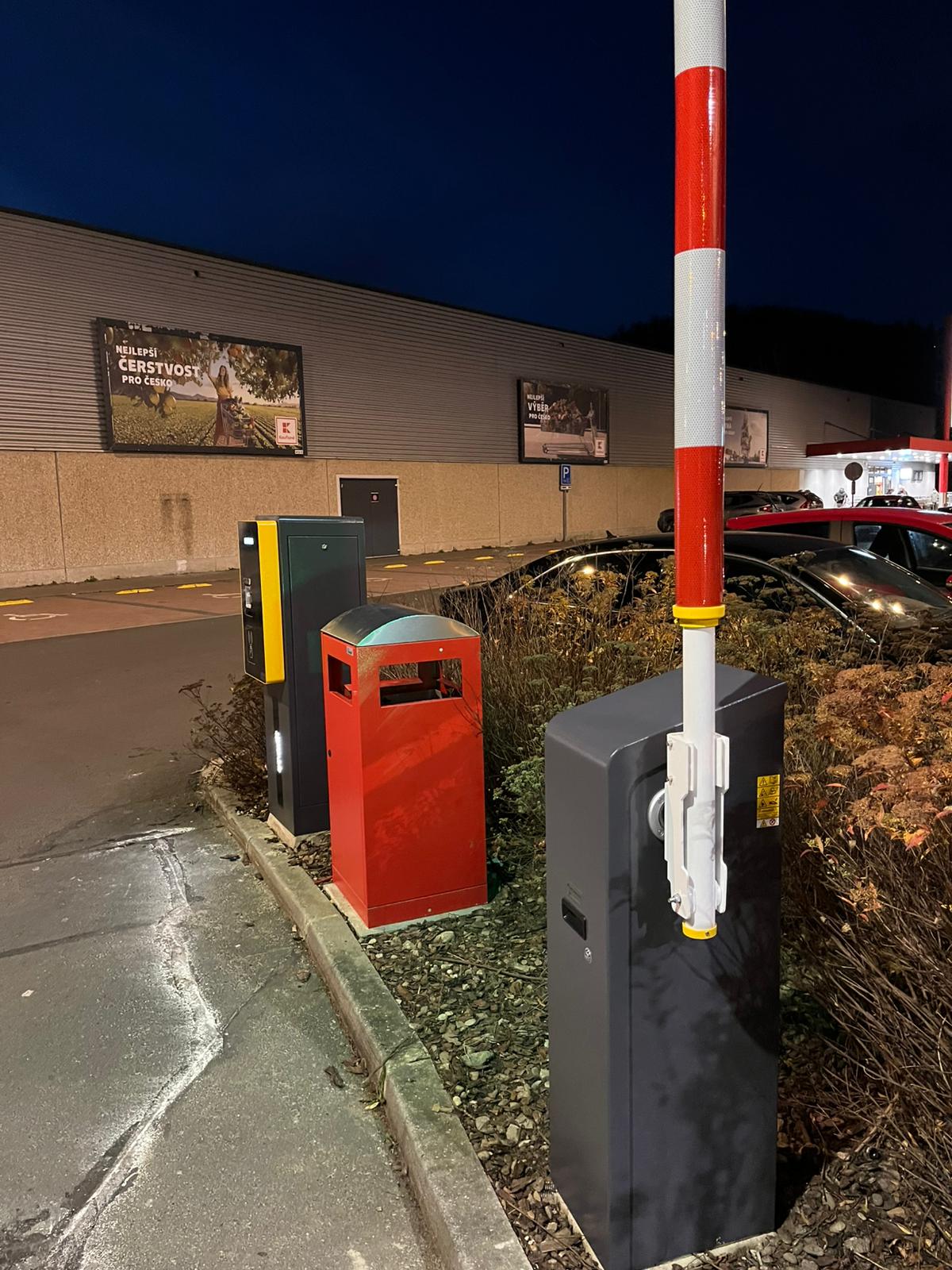 Combined parking system with tickets and cameras in front of the Kaufland Hořovice store