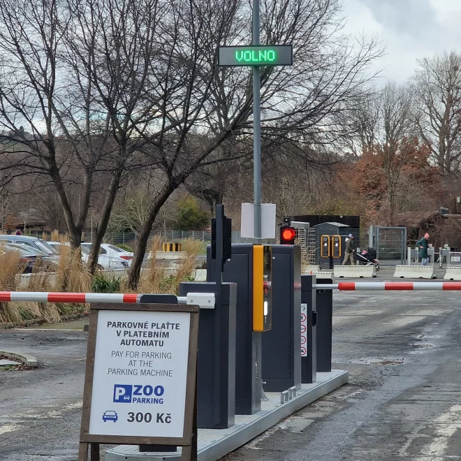 Три пары шлагбаумов и терминалов, плюс три автоматических кассовых аппарата. Парковка Пражского зоопарка претерпела трансформацию, и мы оснастили ее модернизированной парковочной системой.