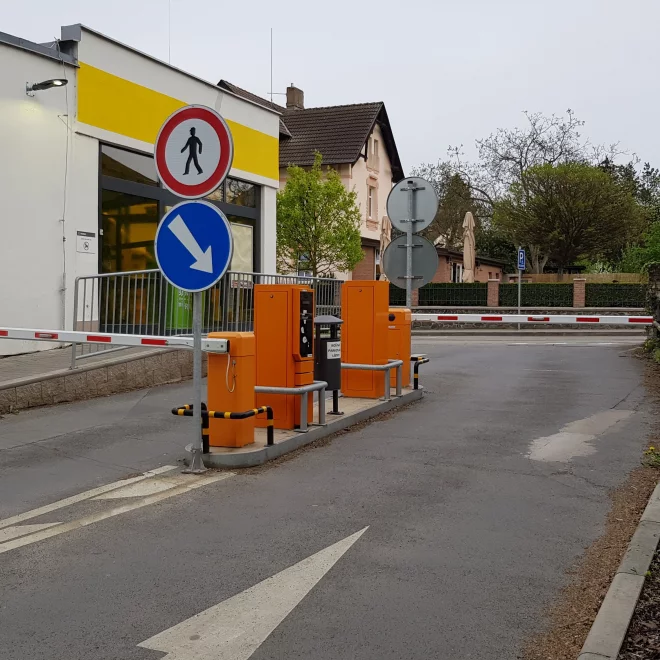 Мы установили несколько коллабораций с сетью супермаркетов Albert, в том числе эту парковочную систему с двумя шлагбаумами возле магазина в Черношице, недалеко от Праги.
