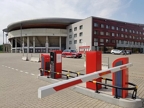 Система парковки рядом с футбольным стадионом СК Славия Прага в Эдеме. Технология со штрих-кодом.